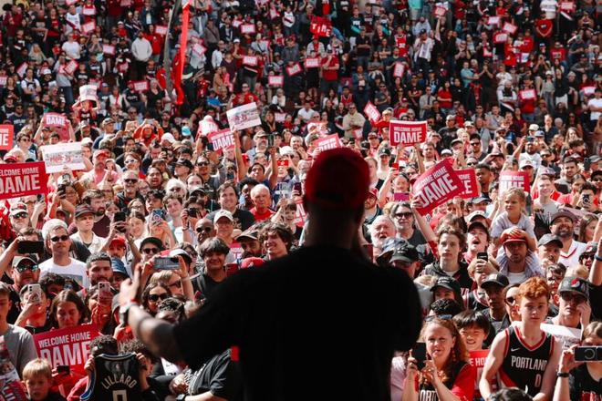 杨瀚森与利拉德拥抱!开拓者举办球迷派对:欢迎35岁传奇回家